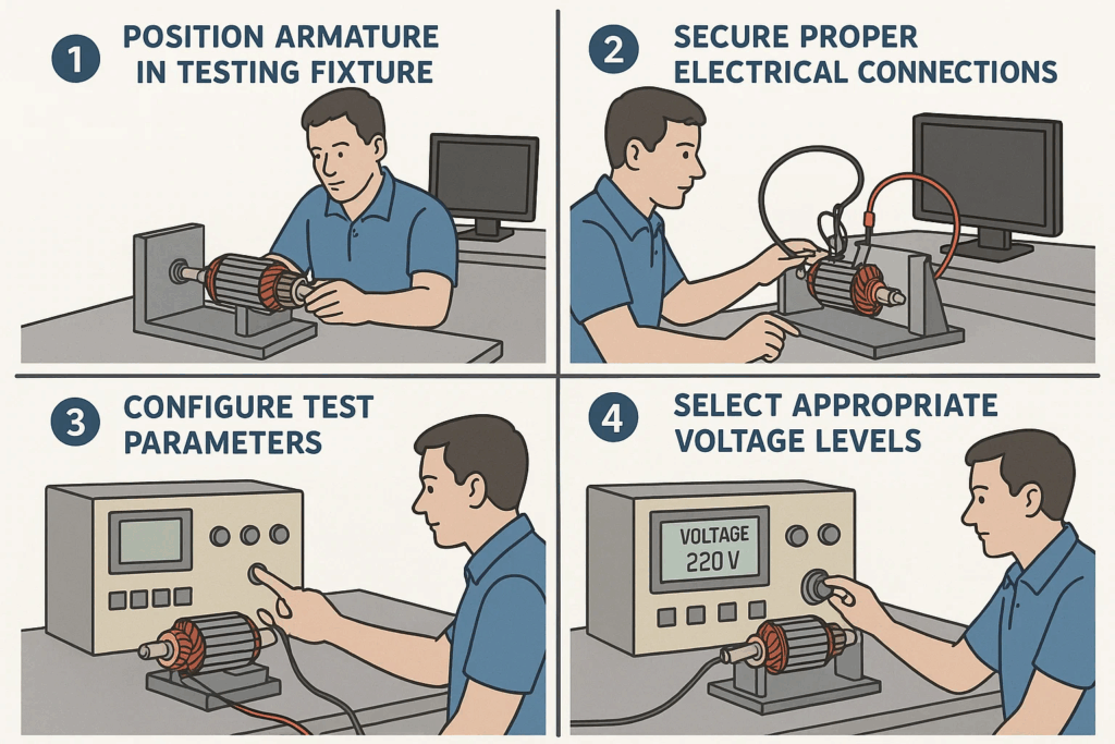 Step 2: Waveform Analysis The surge creates an oscillating waveform, which reflects the winding’s resistance and insulation condition. By observing these waveform patterns, technicians can assess whether the armature is functioning optimally.